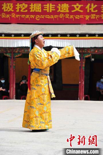 圖為西藏藏劇團演員表演非遺嘎爾。貢嘎來松 攝