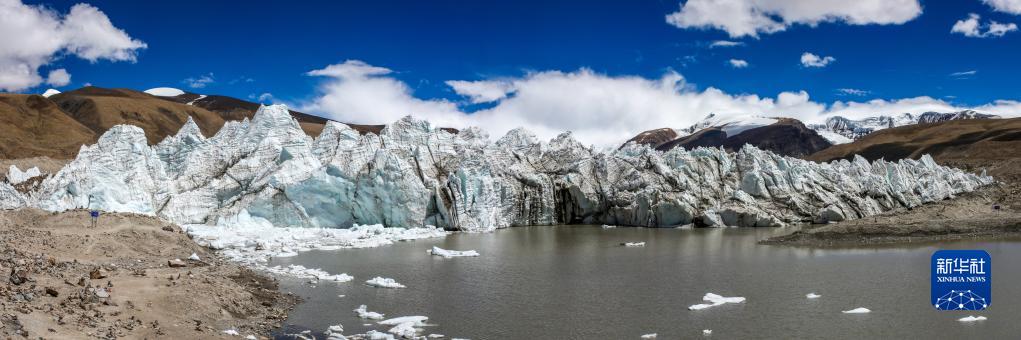 這是2019年6月18日在西藏那曲市拍攝的普若崗日冰川(無(wú)人機(jī)拼接照片)。新華社記者 姜帆 攝