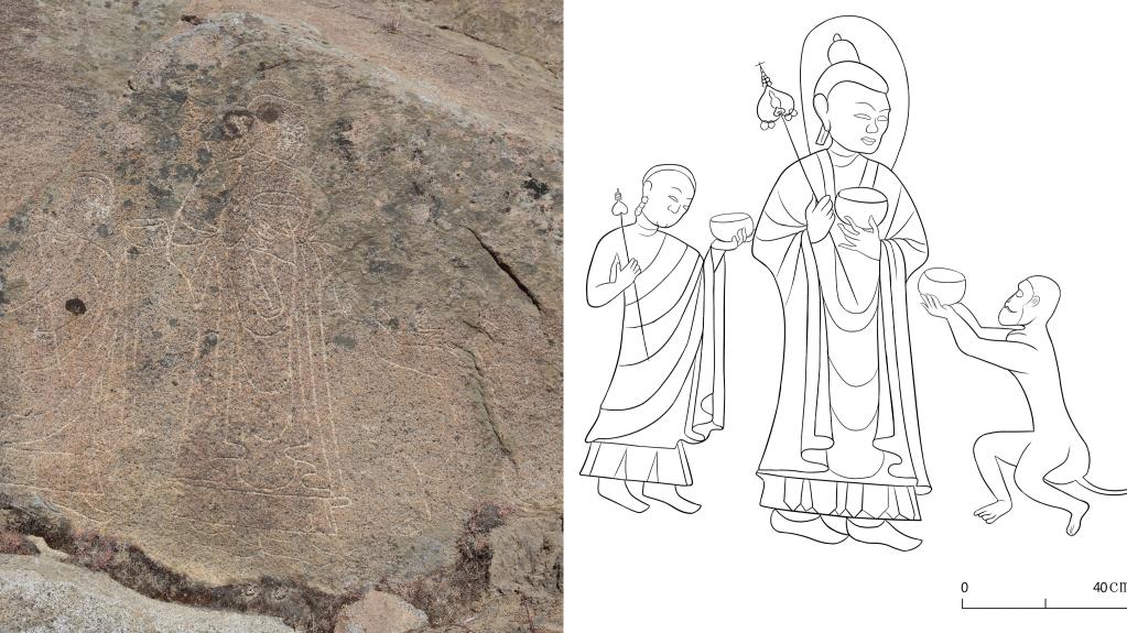 自治區(qū)文物保護研究所研究員夏格旺堆說,這一石刻造像群造像技法皆為陰線刻,雕工技術(shù)嫻熟,線條流暢。此外,部分石刻群區(qū)域不僅造像分布集中,而且在其周圍可見地面石砌建筑遺址,推測應(yīng)當與早期佛教修行場相關(guān)。石刻群中,部分造型還反映出較為明顯的元代特征、吐蕃晚期或吐蕃分裂不久后的吐蕃遺風。