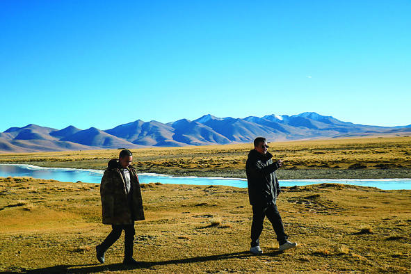 王軍強(qiáng)(右)在巴扎鄉(xiāng)查藏藏布巡河。 (受訪單位供圖)