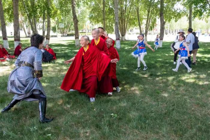 2021 年6 月1 日兒童節(jié),西藏佛學院與拉薩市第一小學舉行聯(lián)誼活動,孩子們一起朗誦詩歌、玩游戲等。記者 江飛波 攝