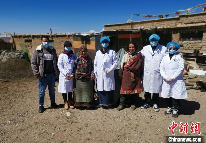 圖為醫(yī)護(hù)人員與基層村干部合影。普蘭縣人民醫(yī)院供圖