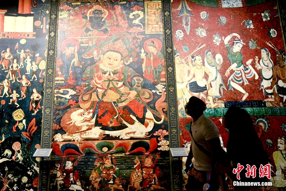 7月8日,歷時五年建設(shè),西藏博物館新館正式對外開放。西藏博物館緊鄰世界文化遺產(chǎn)布達(dá)拉宮和羅布林卡,2017年10月,其改擴(kuò)建項(xiàng)目正式啟動。新館在老館基礎(chǔ)上進(jìn)行擴(kuò)建,建筑外觀沿襲傳統(tǒng)藏式建筑。據(jù)了解,西藏博物館館藏文物52萬件。其中,珍貴文物達(dá)4萬余件(套),類別包括考古出土文物、印章封誥、唐卡、古籍、造像、法器、瓷器、玉器、絲織品、雜項(xiàng)等十八類,具有極高的歷史、藝術(shù)和科學(xué)價值。此次開館,共有2700余件(套)文物展出,其中有600余件(套)文物首次展出。圖為游客在館內(nèi)參觀。 中新社發(fā) 李林 攝