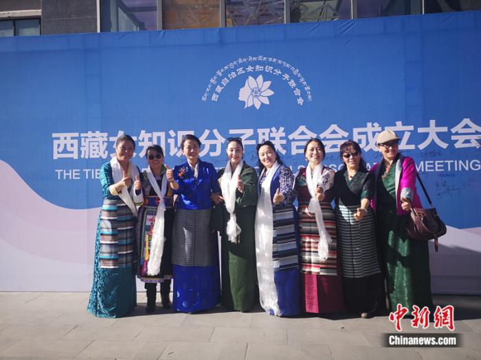2019年,邊巴拉姆(左三)參與成立西藏自治區(qū)女知識(shí)分子聯(lián)合會(huì),并擔(dān)任首任會(huì)長。受訪者供圖