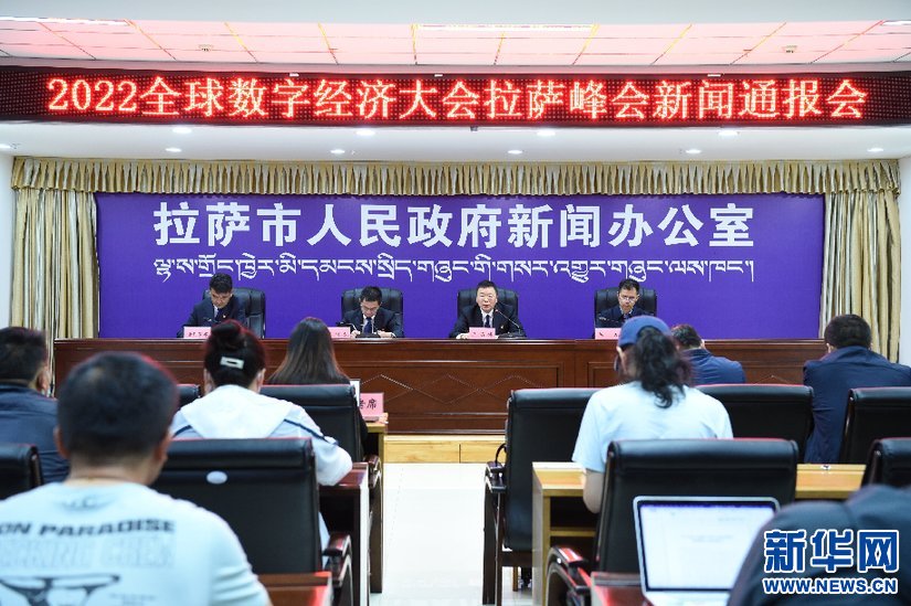2022全球數(shù)字經(jīng)濟大會拉薩峰會新聞通報會現(xiàn)場(7月21日攝)。新華網(wǎng) 旦增努布攝