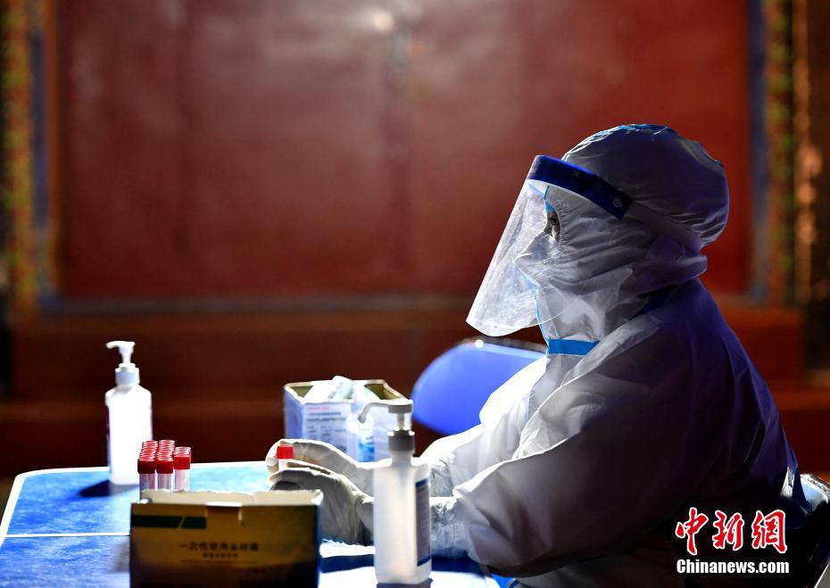 8月14日,西藏拉薩八廓街的一處核酸檢測點(diǎn)。當(dāng)日,拉薩市應(yīng)對新冠肺炎疫情工作領(lǐng)導(dǎo)小組決定,至8月15日凌晨3時的拉薩主城區(qū)消殺管理時間,再延長三天至8月18日凌晨3時,在拉薩主城區(qū)以社區(qū)網(wǎng)格為基本單位,快速精準(zhǔn)開展多輪全員核酸篩查。 中新社記者 李林 攝