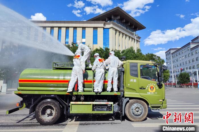 西藏森林消防特勤大隊(duì)利用水罐車對重要區(qū)域進(jìn)行消殺。西藏森林消防總隊(duì) 供圖