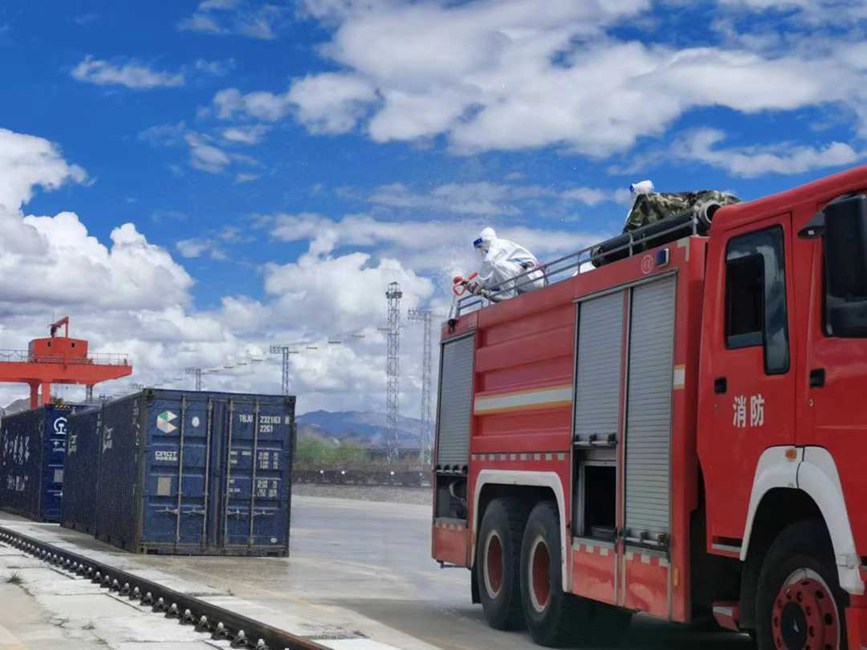 拉薩西站聯(lián)系堆龍德慶區(qū)乃瓊街道防疫部門組織堆龍消殺隊,對拉薩西站東門區(qū)域、中風險區(qū)宏順裝卸宿舍樓內(nèi)及大門進行專業(yè)、全面、系統(tǒng)性消殺;日喀則站聯(lián)系市疫情防控部門消殺組,對林瑞達裝卸隊院內(nèi)、貨運職工、裝卸隊住宿樓進行;那曲站聯(lián)系市消防部門對車站、站臺、貨場等重要場所進行專業(yè)、全面、系統(tǒng)性消殺。