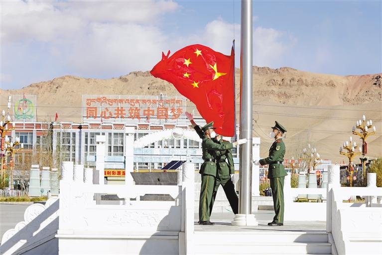 拉薩市堆龍德慶區(qū)的門堆村和崗吉村組織全體村干部舉行線上線下升國(guó)旗儀式,鮮艷的五星紅旗冉冉升起,飄揚(yáng)在村委會(huì)上空。嘹亮的國(guó)歌聲中,鮮艷的國(guó)旗下,莊嚴(yán)肅穆的氛圍里,熱愛(ài)祖國(guó)、奮發(fā)圖強(qiáng)的情感在每個(gè)人心中激蕩。