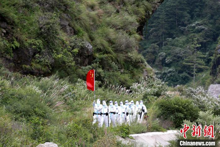 10月1日,駐扎在中尼邊境的吉隆出入境邊防檢查站組織移民管理警察高舉國旗在邊境執(zhí)勤巡邏任務(wù)。