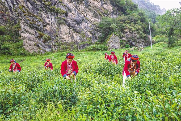 圖為加快建設邊境沿線發(fā)展帶,邊境一線各族群眾生活有保障、致富有渠道、守邊有動力、發(fā)展有支撐。圖為西藏自治區(qū)錯那縣茶葉專業(yè)合作社農(nóng)牧民采摘新茶。