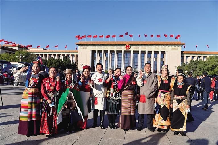 圖為閉幕會(huì)后,西藏基層代表在人民大會(huì)堂前合影留念。