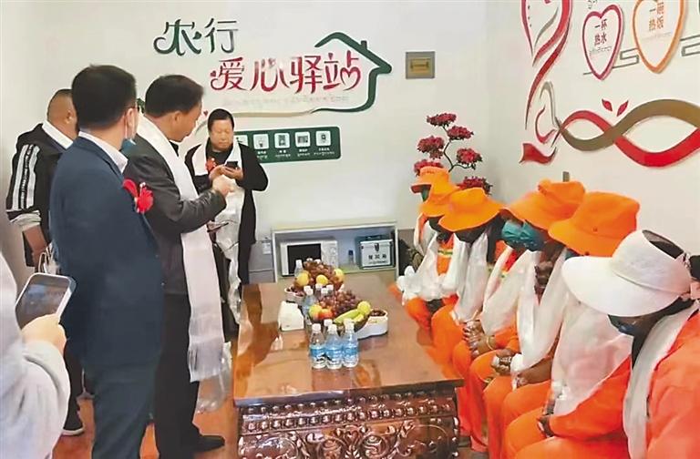 農(nóng)行日喀則分行在臨街網(wǎng)點設(shè)立“農(nóng)情暖域——愛心驛站”,為戶外勞動者提供便民服務(wù)。