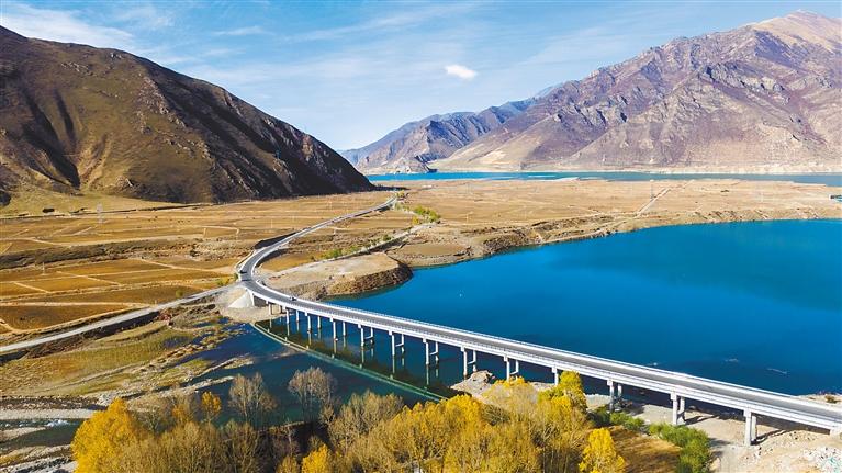 黨的十八大以來,西藏交通運輸事業(yè)取得巨大成就,形成了縱橫交錯、四通八達的綜合交通運輸網絡。十年來,全區(qū)公路總里程由6.52萬公里增至12.07萬公里,高等級(高速)公路通車里程由38公里增至1105公里,以拉薩為中心的3小時綜合交通圈正加快形成,拉林鐵路建成投運,復興號首次開上高原……一條條團結線、一條條幸福路,為西藏經濟社會發(fā)展提供了有力支撐。