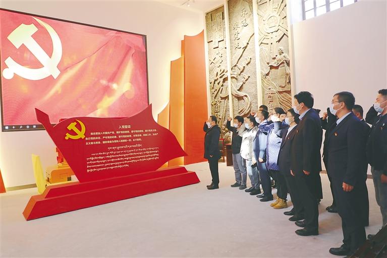農(nóng)行昌都分行在崗?fù)墟?zhèn)紅色教育基地開展黨性教育活動。