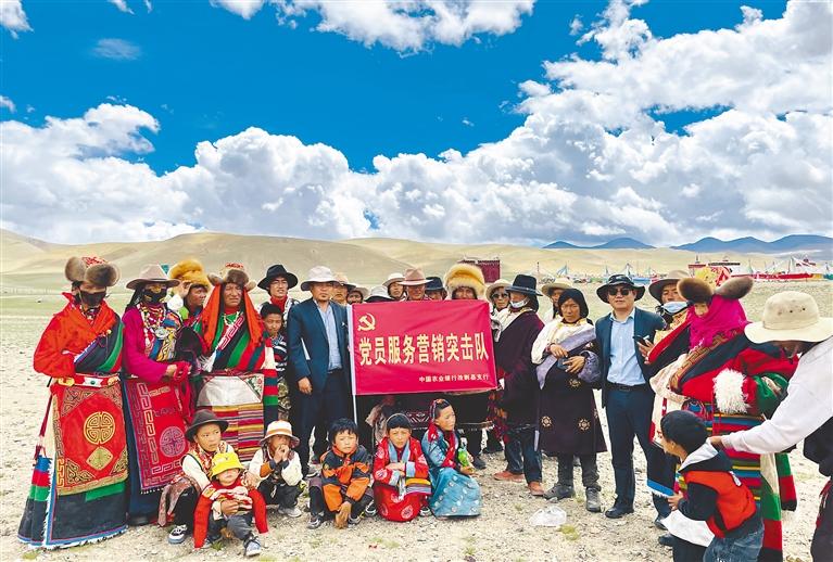 農(nóng)行阿里分行黨員服務(wù)營銷突擊隊把金融服務(wù)送到百姓家門口。