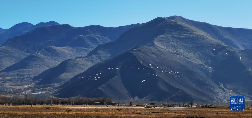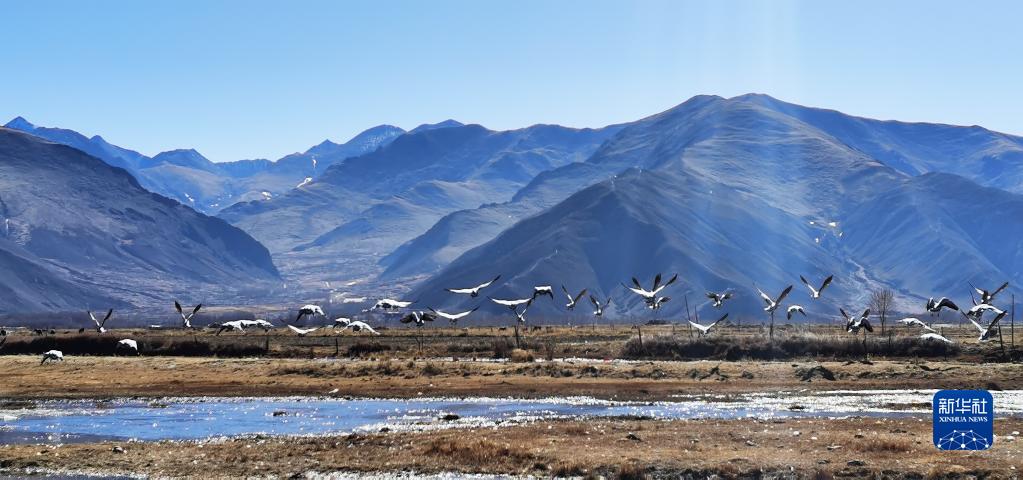 唐嘎鄉(xiāng)位于拉薩市達(dá)孜區(qū)東北部,這里每年冬季都會(huì)迎來(lái)黑頸鶴、斑頭雁、赤麻鴨等候鳥(niǎo)。這些珍稀鳥(niǎo)類(lèi)時(shí)而在空中盤(pán)旋,時(shí)而棲息在水邊,營(yíng)造出一幅生機(jī)盎然的冬季畫(huà)卷。