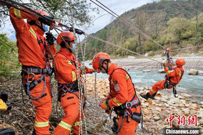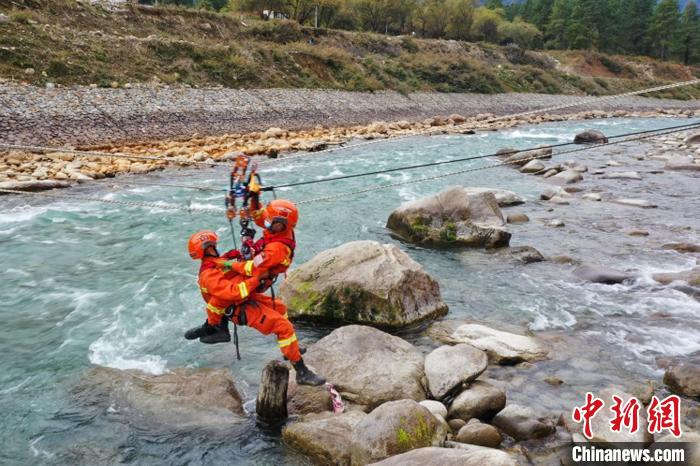 繩索渡河救援訓(xùn)練現(xiàn)場。 唐世博 攝