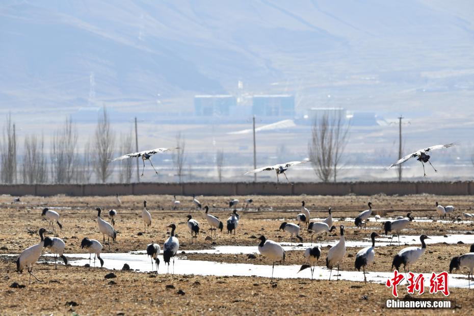 每年的10月底,成群的黑頸鶴飛到西藏拉薩市林周縣越冬,在拉薩市林周縣周邊的湖泊濕地度過5個月的“閑云野鶴”生活,次年三四月份再飛向藏北草原繁殖。黑頸鶴是世界上唯一一種高原鶴類。具有足長、喙長、頸長的典型涉禽類特征,適合在沼澤地里行走。黑頸鶴的頸、尾為黑色,體羽為灰白色。黑頸鶴是國家一級保護(hù)動物。目前,每年到林周縣越冬的黑頸鶴已達(dá)2000只左右。圖為黑頸鶴在林周境內(nèi)的農(nóng)田里覓食、嬉戲。 貢嘎來松 攝