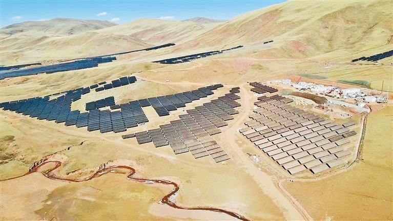 日前,昌都市保供重點(diǎn)項(xiàng)目江達(dá)索日光伏電站并網(wǎng)發(fā)電。該項(xiàng)目位于海拔4000米的昌都市江達(dá)縣青泥洞鄉(xiāng)索日村,年均發(fā)電量8800萬(wàn)千瓦時(shí),每年節(jié)約標(biāo)煤2.68萬(wàn)噸,可有效緩解當(dāng)?shù)囟居秒姼叻迤陔娏θ笨?,為群眾生產(chǎn)生活和昌都市經(jīng)濟(jì)社會(huì)發(fā)展提供安全清潔的電力保障。 圖為索日光伏電站一角(無(wú)人機(jī)照片)。通訊員 邱云 記者 李梅英 攝