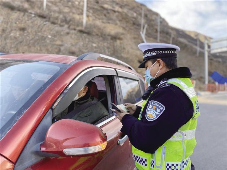 昌都交警對(duì)過(guò)往車(chē)輛進(jìn)行檢查。圖由昌都交警提供