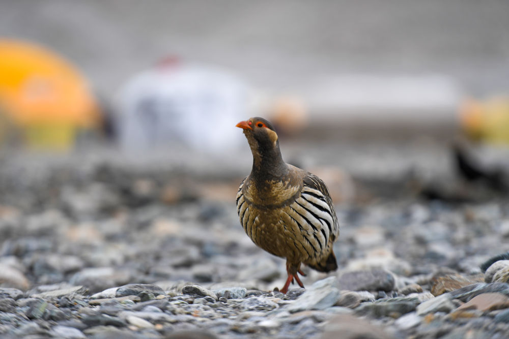 在珠峰大本營(yíng)拍攝的一只藏雪雞(2022年5月8日攝)。