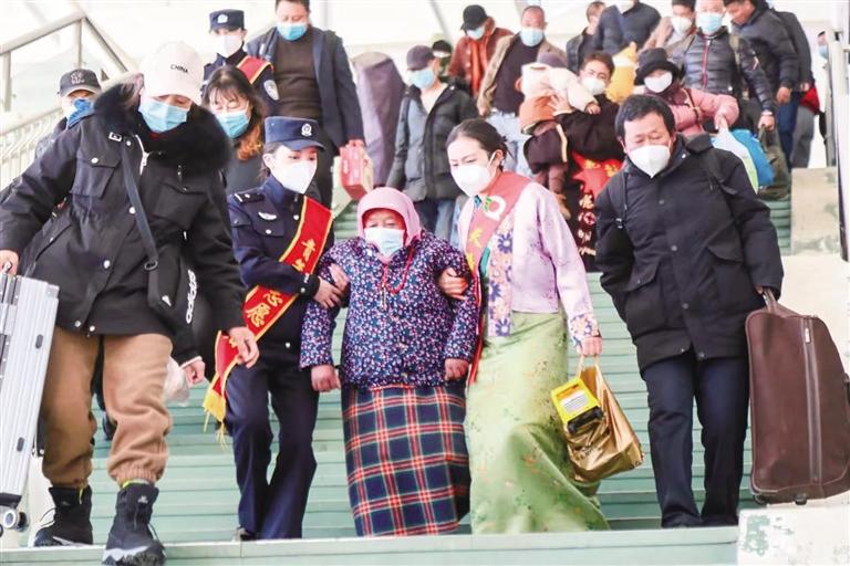 為做好春運(yùn)工作,拉薩火車站團(tuán)委“天路格?;ㄇ嗄曛驹刚叻?wù)隊(duì)”正式啟動(dòng)“熱心服務(wù)春運(yùn)路 愛心志愿暖冬行”行動(dòng)。 1月7日起至2月中旬,旅客可以在拉薩火車站進(jìn)出站口、候車大廳等場所看到一抹青春“志愿藍(lán)”。山南火車站、林芝火車站也可以看到穿戴“天路格?;ㄖ驹刚摺本R帶的鐵路工作者。本次暖冬行動(dòng)為期40天,每天共計(jì)有20余名志愿者參與活動(dòng),來自“天路格?;ㄇ嗄曛驹刚叻?wù)隊(duì)”的鐵路青年志愿者將和地方志愿者一起為進(jìn)藏、出藏旅客提供引導(dǎo)咨詢、愛心幫扶等服務(wù),用最溫暖、最燦爛的笑容、最便捷暖心的服務(wù)舉措保障每位旅客便捷出行。