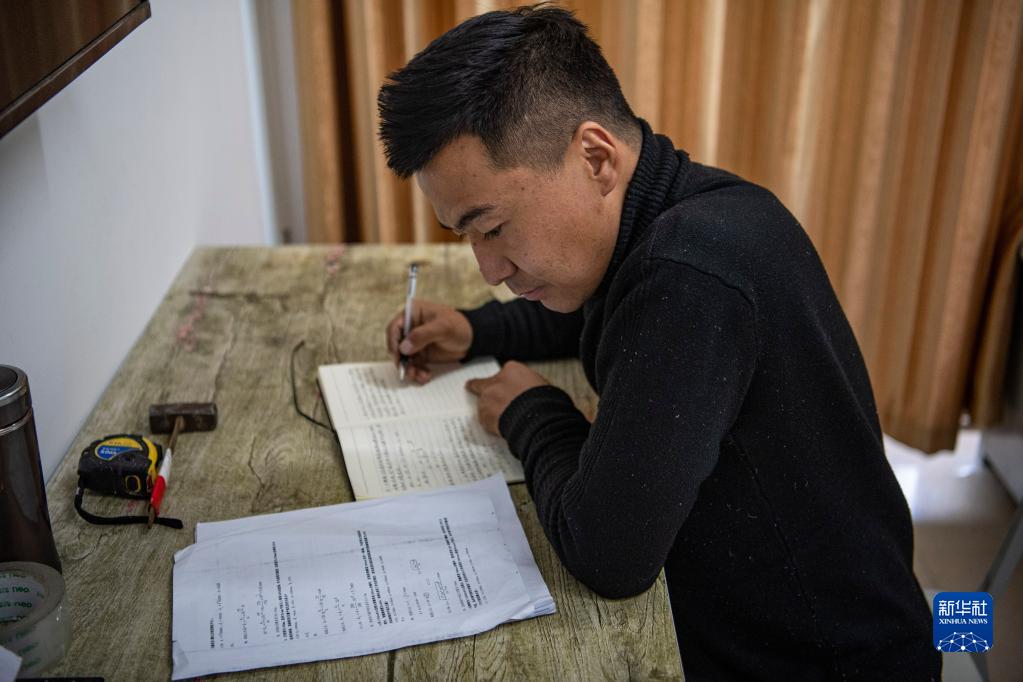 在拉林鐵路扎囊工電綜合工區(qū)的宿舍里,羅布在進行業(yè)務(wù)學習(1月12日攝)。新華社記者 孫非 攝