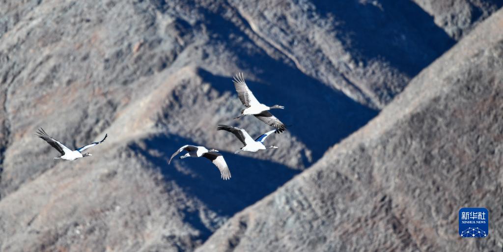 在西藏雅魯藏布江中游河谷黑頸鶴國家級自然保護區(qū)日喀則市拉孜縣越冬的黑頸鶴(1月23日攝)。新華社記者 晉美多吉 攝
