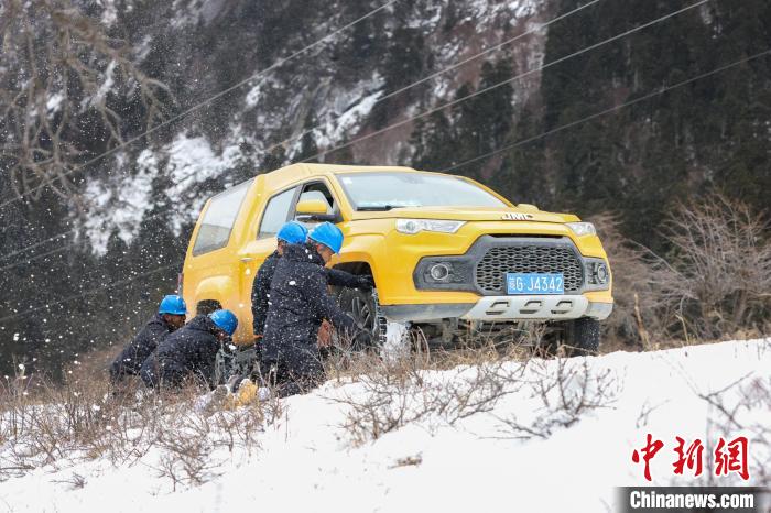 盤山公路上,積雪和暗冰使車輛打滑無法繼續(xù)前行,羅布頓珠和隊友只好下車,給車輛掛好防滑鏈繼續(xù)前行,原本兩個小時的車程,這次花了4個小時才抵達巡線點。