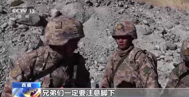 西藏軍區(qū)“高原戍邊模范營”某連連長 潘洪帥:兄弟們一定要注意腳下,每一步都要踩實,現(xiàn)在我們手拉手往上走。
