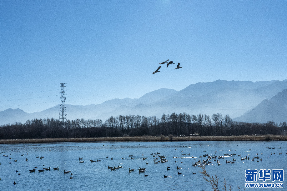 2月2日,在拉魯濕地嬉戲的鳥類。新華網(wǎng) 旦增努布 攝