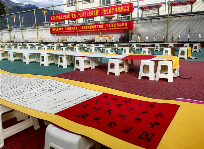 創(chuàng)新載體,全方位宣傳。林芝市統(tǒng)籌各類宣傳資源,線上線下同頻共振,全方位、多角度、寬領(lǐng)域、深層次宣傳黨的二十大精神和區(qū)黨委十屆三次全會、市委二屆三次全會精神,營造學習宣傳的濃厚氛圍。一是新聞宣傳強信心。林芝報、林芝廣播電視臺、西藏林芝網(wǎng)、微林芝等市屬主流媒體紛紛開設《學習貫徹黨的二十大》《新時代新征程新偉業(yè)》等多個專題專欄,持續(xù)推出學習貫徹黨的二十大精神相關(guān)報道。截至目前,共刊播《基層宣講員讓黨的二十大精神翩翩飛入百姓家》《軍民共話美好未來 繪就美麗鄉(xiāng)村新畫卷》等相關(guān)新聞2500余條。二是社會面宣傳筑同心。采取“屏、板、欄、幅”立體宣傳方式,在全市各級黨政機關(guān)和企事業(yè)單位大門LED電子顯示屏以及市、縣城區(qū)主要街道、跨街龍門、出租車頂燈、汽車站等公共場所的宣傳媒介上滾動播放自治區(qū)統(tǒng)一印發(fā)的宣傳標語1.2萬余條次,更新懸掛國旗3.5萬余面,制作發(fā)放宣傳海報1.5萬張、宣傳品2500余個,形成抬頭可見、隨處可學的濃厚社會氛圍。察隅縣上察隅鎮(zhèn)遲巴村村“兩委”和駐村工作隊用彩色粉筆繪制黨的二十大、“新黨章”等主題黑板報,用畫筆向村民傳遞黨的最新政策,深受群眾喜愛。三是網(wǎng)絡宣傳聚民心。充分發(fā)揮新媒體平臺宣傳形式豐富的特點,持續(xù)推送重磅報道和重點文章,策劃打造一批融媒體產(chǎn)品,在全網(wǎng)迅速興起學習宣傳貫徹會議精神熱潮。市委網(wǎng)信辦策劃制作短視頻《學習黨的二十大精神 談心得感悟》、“林芝融媒”抖音號推出《二十大時光》微視頻,將鏡頭對準二十大代表、基層黨員群眾,展現(xiàn)全市干部群眾積極向上的良好風貌。“巴宜融媒”抖音號推出“黨的二十大精神快問快答”系列活動,線上線下聯(lián)動學習,推動黨的二十大精神入腦入心?!安煊缛诿健倍兑籼柌邉濋_展《鄉(xiāng)村振興正當時》黨的二十大主題抖音直播活動,通過網(wǎng)絡直觀展現(xiàn)新時代察隅新農(nóng)村、新氣象、新希望。目前已開展7場直播活動,觀看人數(shù)達10萬人次。四是文藝宣傳暖人心。充分發(fā)揮市、縣(區(qū))、村三級文藝文化團體作用,組織開展“深入生活 扎根人民”“幸福不忘共產(chǎn)黨 陽光路上夢起航”等各類文藝文化活動,精心打造文藝精品力作,用文藝活動、文藝作品溫暖人心。截至目前,各級文藝演出隊開展文藝匯演293場次,參與人數(shù)4.2萬余人次;創(chuàng)作推出音樂作品《沐浴幸?!?、攝影作品《我和國旗》、書法美術(shù)作品《建功新時代 奮進新征程》、文學作品《黨的光輝照萬家》等文藝作品300余個。波密縣完全小學在崗云杉林景區(qū)組織開展“學習黨的二十大,爭做好少年”采風寫生活動,學生們以文藝創(chuàng)作的形式學習黨的二十大精神,并將學習成果轉(zhuǎn)化到作品中。市民族藝術(shù)團以深入挖掘歷史文化、講好紅色故事為主題,籌拍了微電影《立定村屹立的紅旗》。市文聯(lián)書法美術(shù)家協(xié)會理事茹輝春同志,在黨的二十大召開后用行、楷兩種書法形式撰寫了黨的二十大報告全文書卷,書卷共有八卷,每卷長30米。市委宣傳部、市文廣局、市文聯(lián)組織市書法美術(shù)家協(xié)會開展“禮贊二十大·送福進萬家”林芝市2023年新春書法美術(shù)家“深入生活 扎根人民”送祝福和采風活動,共開展送春聯(lián)活動15場次,送出對聯(lián)、福字、掛軸、繪畫等作品8950幅(對),服務群眾6700余人次。