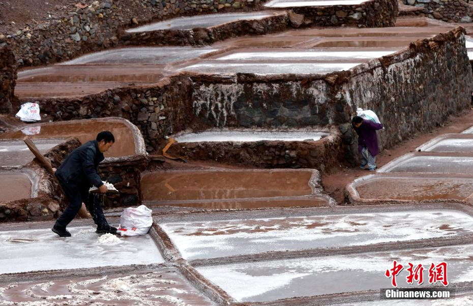 2月13日,西藏昌都芒康縣納西民族鄉(xiāng)加達村村民正在鹽田勞作。