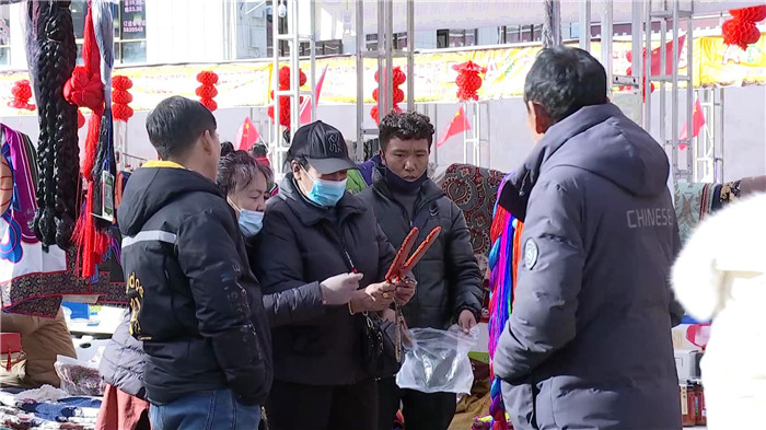 走進(jìn)年貨街,記者看到大街小巷置辦年貨的人群紛至沓來(lái),市場(chǎng)上酥油、卡賽、人參果、五彩青稞穗、切瑪盒、花束等藏歷新年傳統(tǒng)年貨應(yīng)有盡有,特色產(chǎn)品豐富充裕。人們盡情挑選年貨,大包小包滿載而歸。