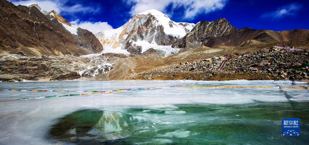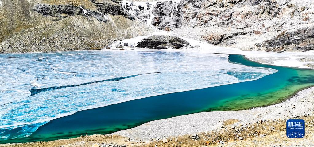這是瓊穆崗嘎冰川上的一處冰湖(手機(jī)照片,2月20日攝)。新華社記者 沈虹冰 攝