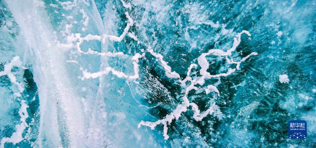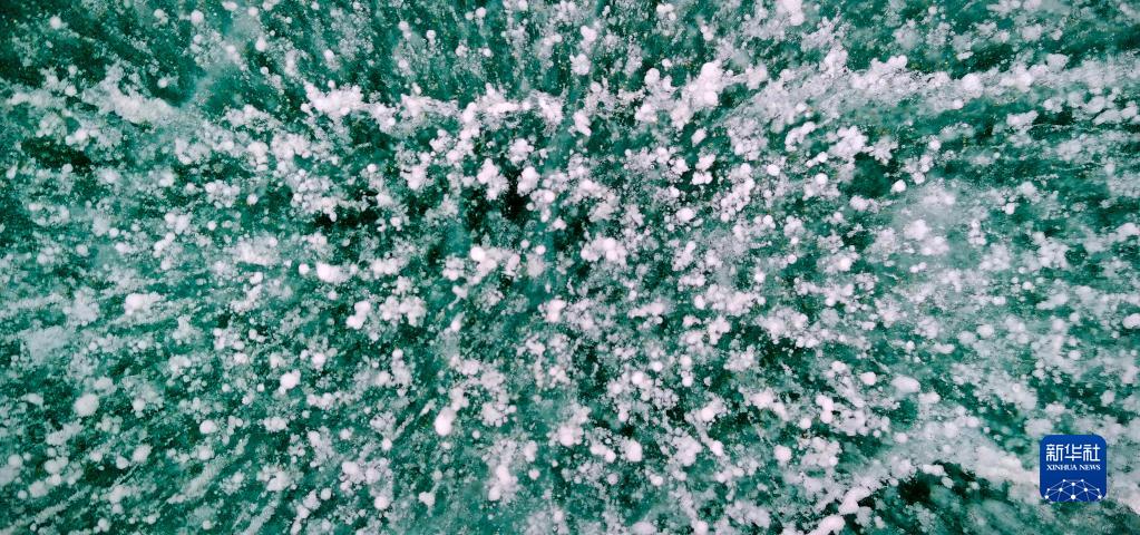 這是瓊穆崗嘎冰川冰湖湖面的“氣泡冰”(手機(jī)照片,2月20日攝)。新華社記者 沈虹冰 攝