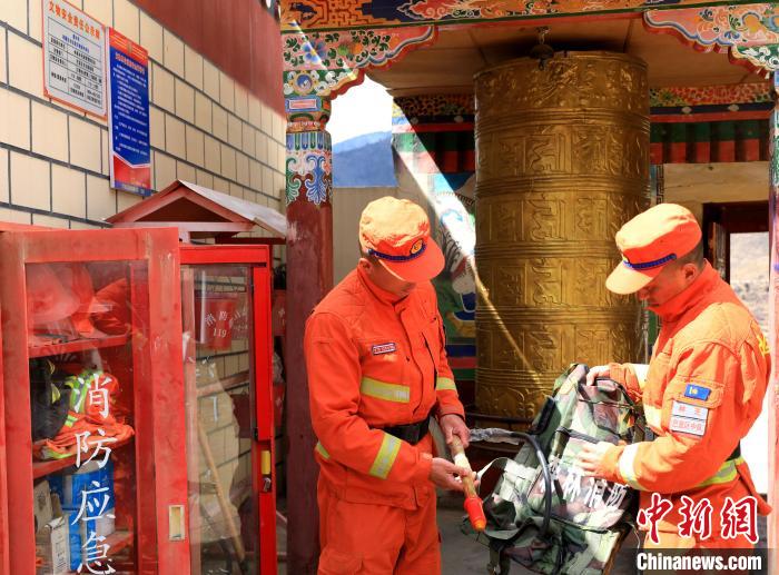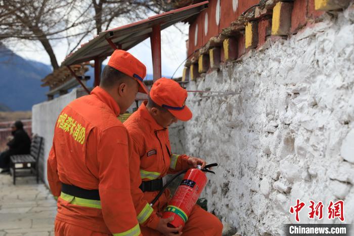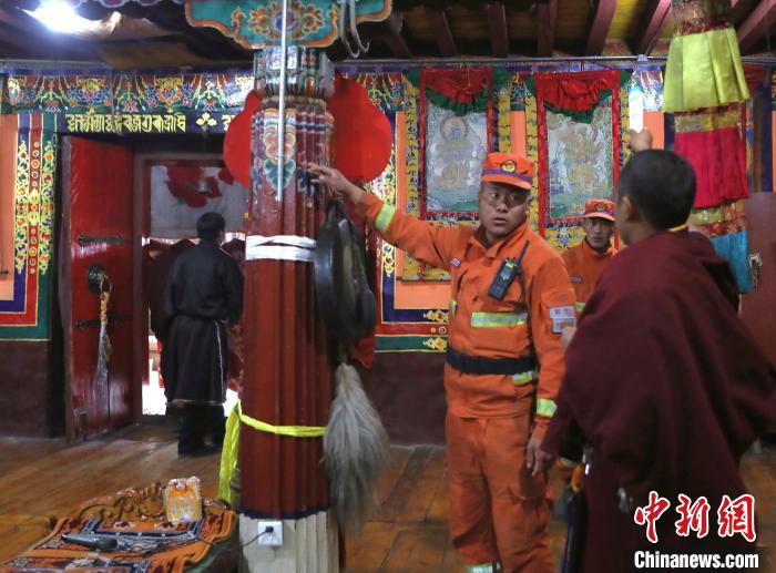 森林消防隊員正在排查寺廟火災隱患?!∥骼@拉翁 攝