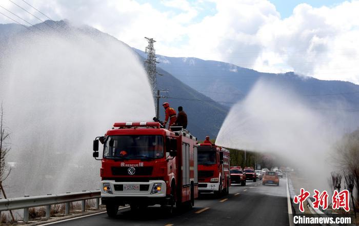 林芝市森林消防支隊(duì)消防員正在進(jìn)行灑水增濕作業(yè)。西繞拉翁 攝
