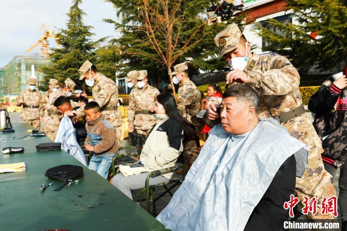 圖為官兵為民眾義務理發(fā)?!±_警備區(qū)某團供圖