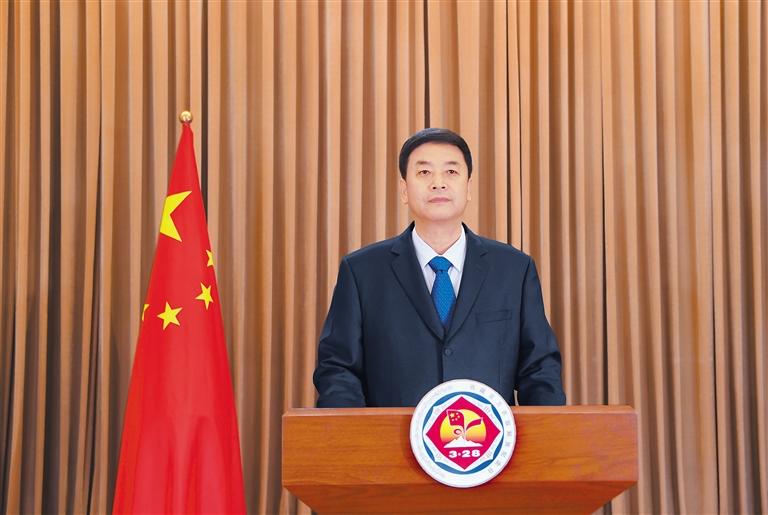同志們,朋友們!征程越是壯闊,目標(biāo)越是遠(yuǎn)大,越需要核心的掌舵定向、真理的指引領(lǐng)航。今年的全國兩會,習(xí)近平總書記再次全票當(dāng)選國家主席、中央軍委主席,充分反映了全黨全軍全國各族人民的共同心愿,充分體現(xiàn)了黨的意志、人民意志、國家意志的高度統(tǒng)一。有習(xí)近平總書記掌舵領(lǐng)航,我們就有了團(tuán)結(jié)奮斗的“主心骨”、迎擊風(fēng)浪的“定盤星”!