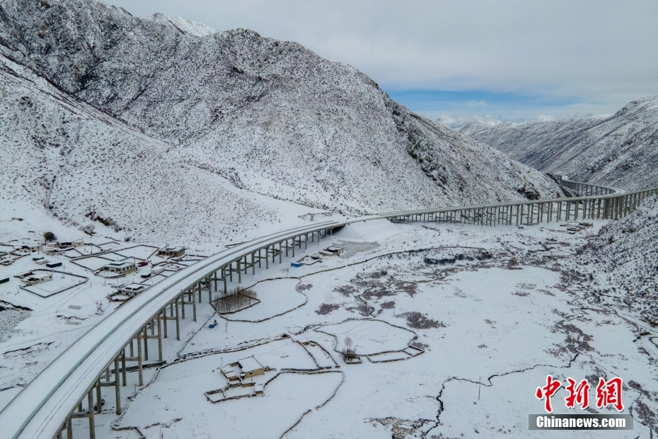 3月28日,西藏S5線拉薩至澤當快速通道項目控制性工程圭嘎拉隧道左洞實現(xiàn)貫通。圖為西藏S5線拉薩至澤當快速通道項目拉薩達孜段。(無人機畫面)
