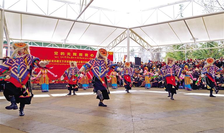 圖為拉薩市熱烈慶祝西藏百萬農(nóng)奴解放紀(jì)念日暨行政村文藝演出隊文藝展演現(xiàn)場。 記者 丹增群培 攝