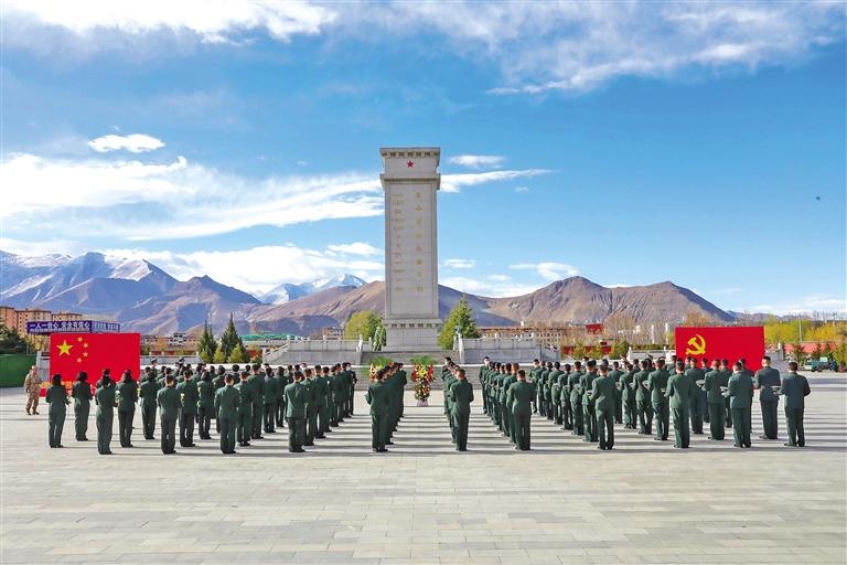 拉薩警備區(qū)某團組織官兵瞻仰烈士紀念碑。