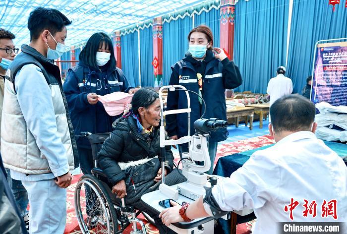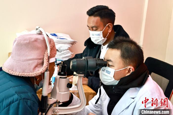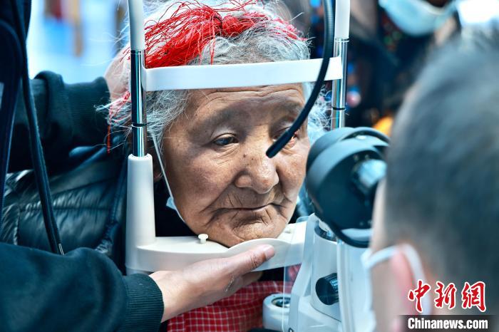 圖為專(zhuān)業(yè)眼科醫(yī)生為老人檢測(cè)視力。 格桑 攝