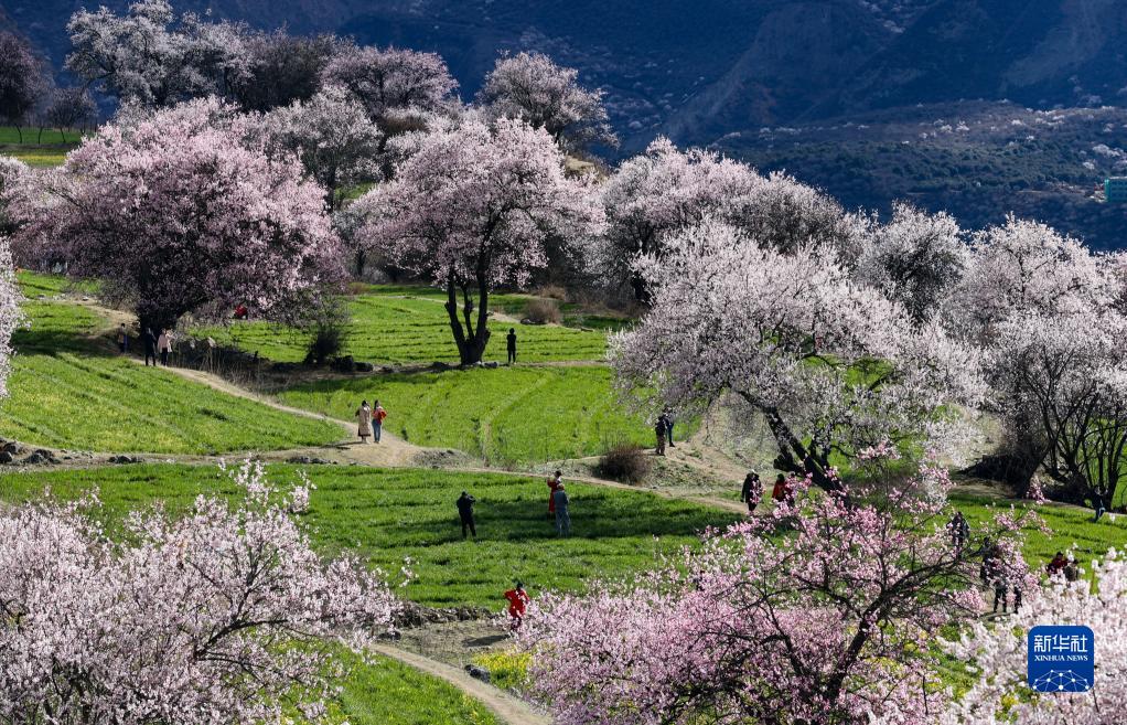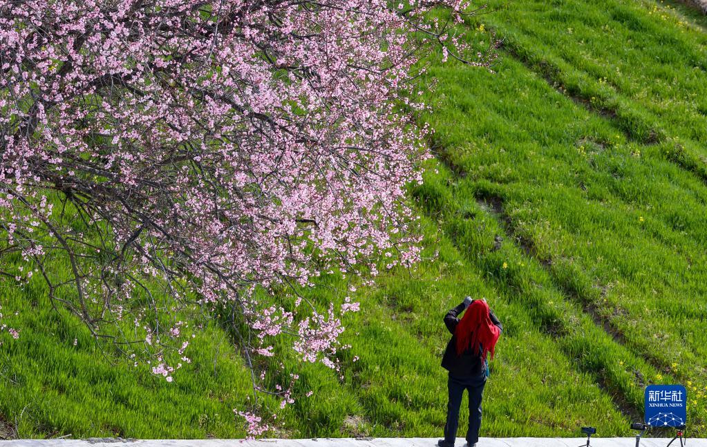 游客在索松村桃花林間游玩(4月5日攝)。新華社記者 姜帆 攝