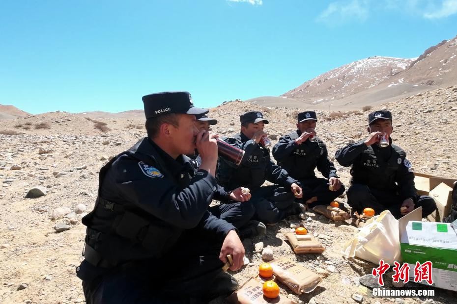 近日,西藏阿里邊境管理支隊(duì)扎西崗邊境派出所組織民警和護(hù)邊員通過(guò)乘車(chē)巡邏和徒步巡邏相結(jié)合的方式,前往海拔4800米的“守邊固邊第一村”——典角村古格川執(zhí)勤點(diǎn)巡邏,經(jīng)過(guò)一個(gè)小時(shí)的車(chē)巡和一個(gè)小時(shí)的徒步巡邏,民警到達(dá)了古格川執(zhí)勤點(diǎn)。通過(guò)巡邏,及時(shí)掌握了邊境一線情況,確保了邊境轄區(qū)安全穩(wěn)定。圖為移民管理警察巡邏途中休息。郭遠(yuǎn)敬 攝