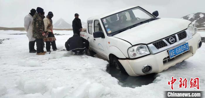 圖為巡護車輛陷車。謝昆軍供圖