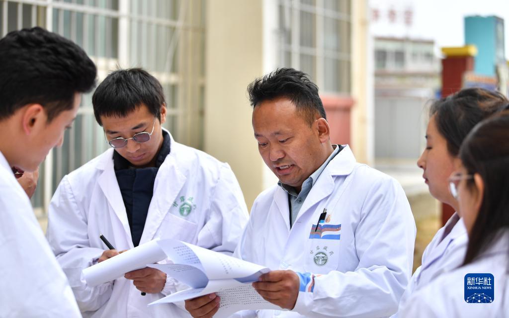 普窮次仁和學生們一起學習中醫(yī)藥相關政策(4月20日攝)。新華社記者 晉美多吉 攝
