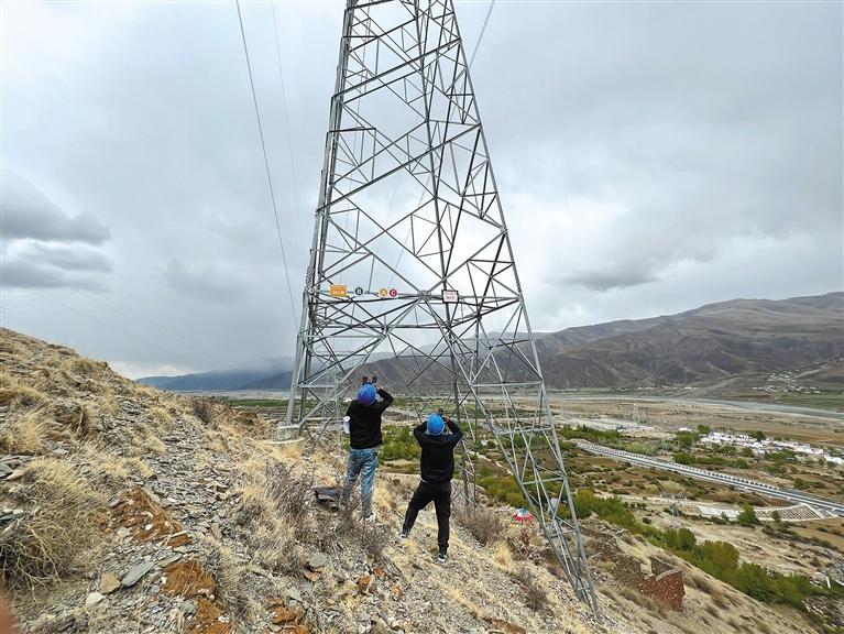 4月30日上午,國(guó)網(wǎng)日喀則供電公司輸電運(yùn)檢中心工作人員在巡檢線路。袁海霞 鄭璐 攝